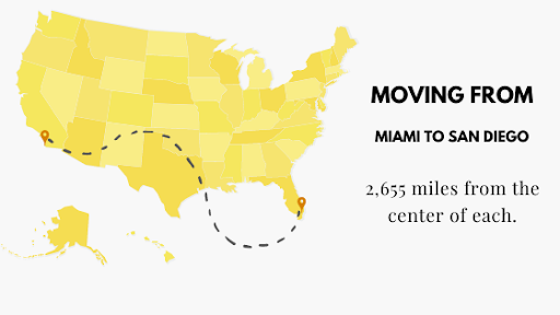 Cross-country moves can be expensive, so it’s important to set a budget so you can stay on track. That’s why Allied provides customers with upfront pricing and customizable moving packages so you can find a moving package that fits your budget. The average cost to move from Miami to San Diego with Allied is $2,550.82 However, it is essential to keep in mind that many factors determine the price of a move, including the exact distance you are moving, the number of items being moved, special shipping or handling needs, and additional services such as packing unpacking. At Allied, we understand how important it is to stay on budget, and that’s why we have made it easy to get an accurate quote using our Instaquote tool listed above.