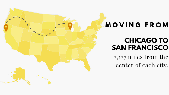 Moving long distance can be expensive and can really put a damper on your budget. The average line haul cost to move from Chicago to San Francisco with Allied is $3,000.There are many factors that will determine the exact cost of your move such as exact distance of the move, the number of items being moved, and additional moving services such as packing and unpacking, so the best way to get an accurate quote is by using our Instaquote listed above.