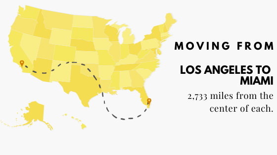 Moving across the country can be both stressful and expensive, so it’s important to choose a professional moving company that you trust to do the job right. Allied has been in the moving industry for more than 90 years and we strive to provide customers with exceptional service at a price they can afford. Although moving long-distance can be costly, the average cost to move from Los Angeles to Miami is $3,584.27. Of course there are many factors that will determine the exact cost such as actual distance of the move, the number of items being moved, and additional services such as packing and unpacking. The best way to get an accurate quote is by using our Instaquote listed above.