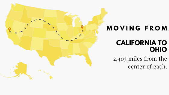 pride ourselves on providing customers with exceptional service at a price that fits their budget. The average cost to move from California to Ohio is $4,524.42. Of course there are many variables that will determine the exact cost such as actual